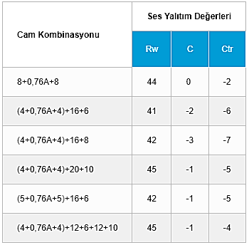 Örnek Kombinasyonalar İçin Ses Yalıtım Değerleri