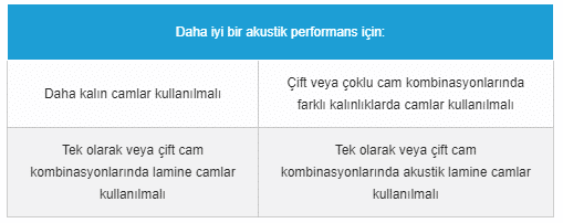 Şişecam Akustik Lamine Cam kullanılabilir.